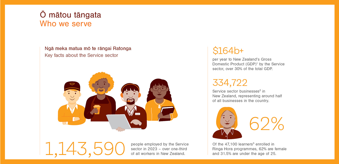 It is a real privilege to deliver the final annual report for Ringa Hora Services Workforce Development Council. The achievements highlighted in this report reflect the dedication and hard work of kaimahi, partners, and, most importantly, industry members in the Service sector.