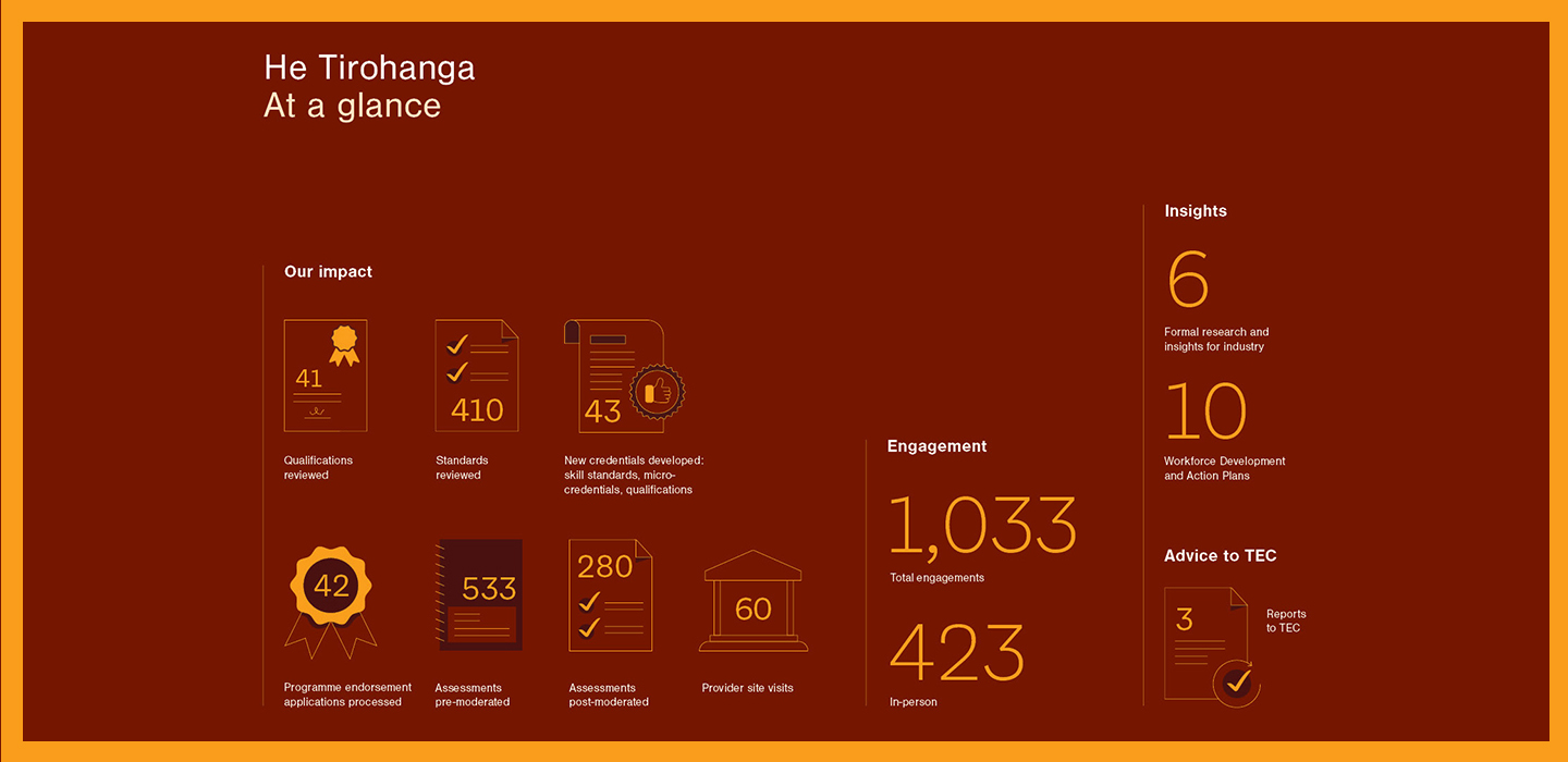 The transformational Te Manu Arataki Leadership Project led to new leadership qualifications, and we reviewed large suites of qualifications in the Business and Hospitality sectors, among others. We also made significant progress in quality assurance by developing new Consent and Moderation Requirements, while our innovative assessment best practice workshops have helped providers in this vital area.